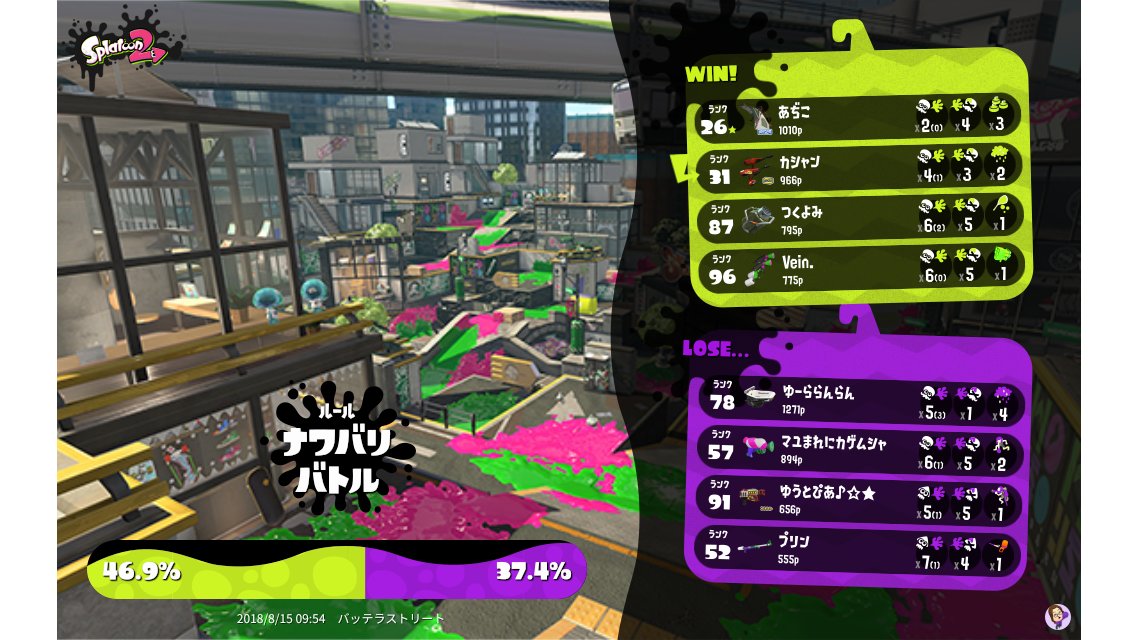 | Mode | Turf War - Regular Battle | ||||||||||||||||||||||||||||||||||||||||