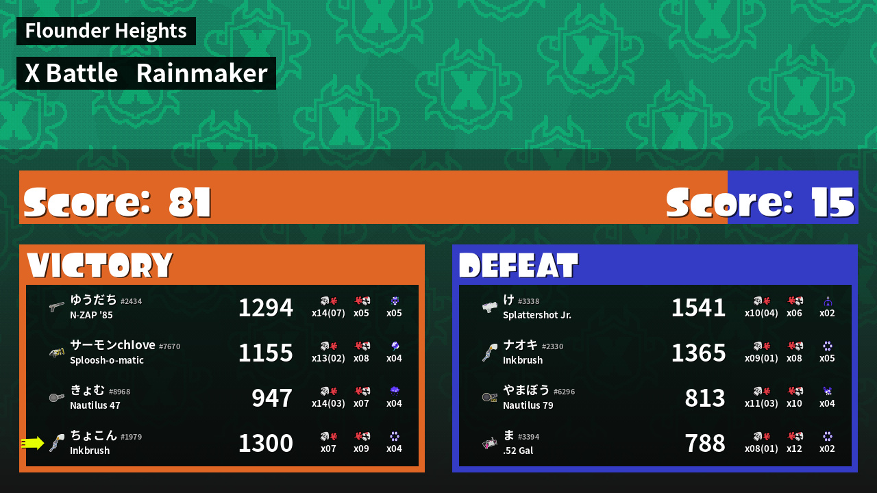| Mode | Rainmaker - X Battle | ||