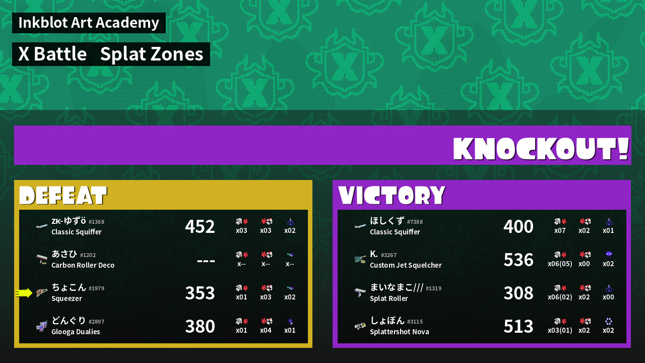 | Mode | Splat Zones - X Battle | ||