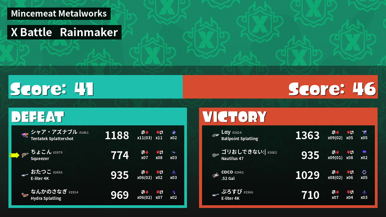 | Mode | Rainmaker - X Battle | ||