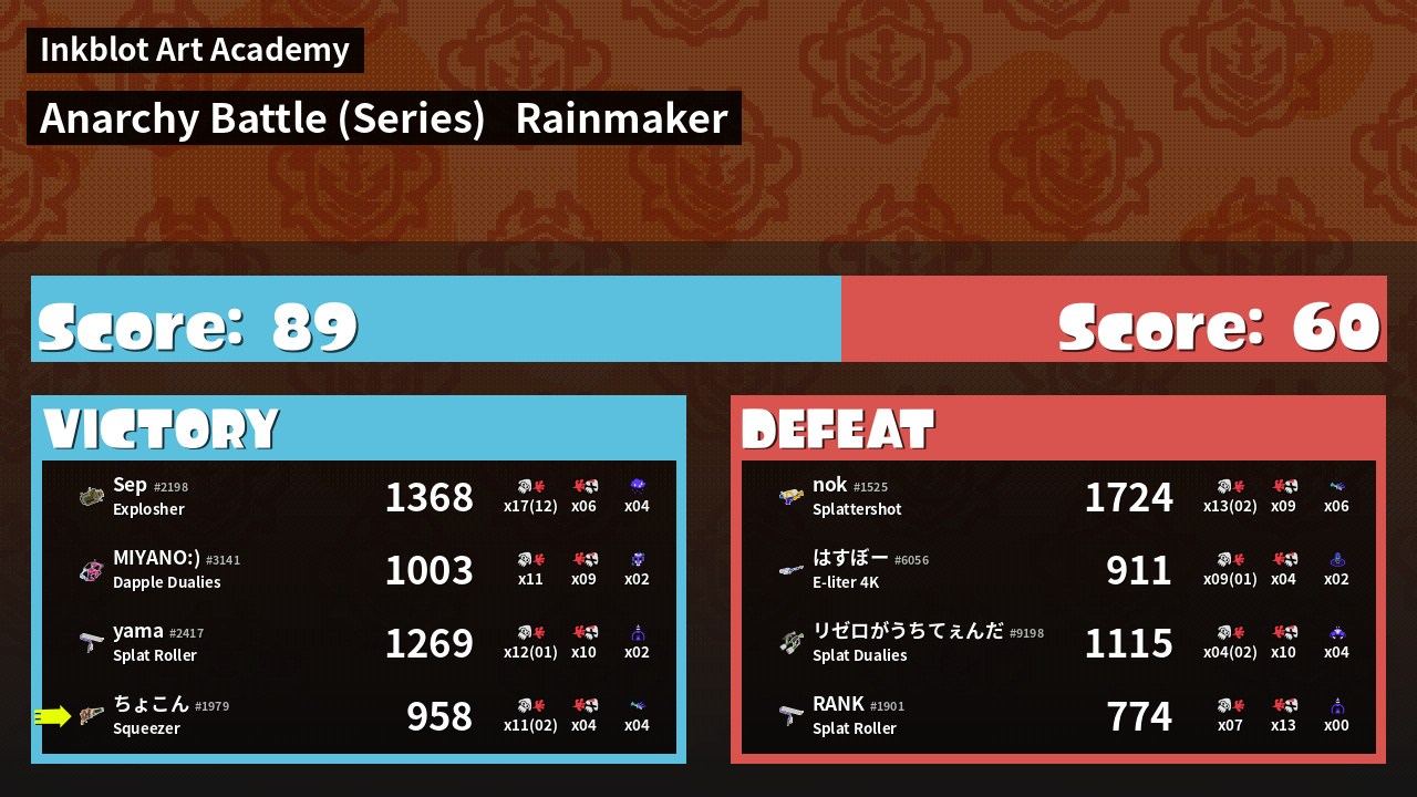 | Mode | Rainmaker - Anarchy Battle (Series) | ||