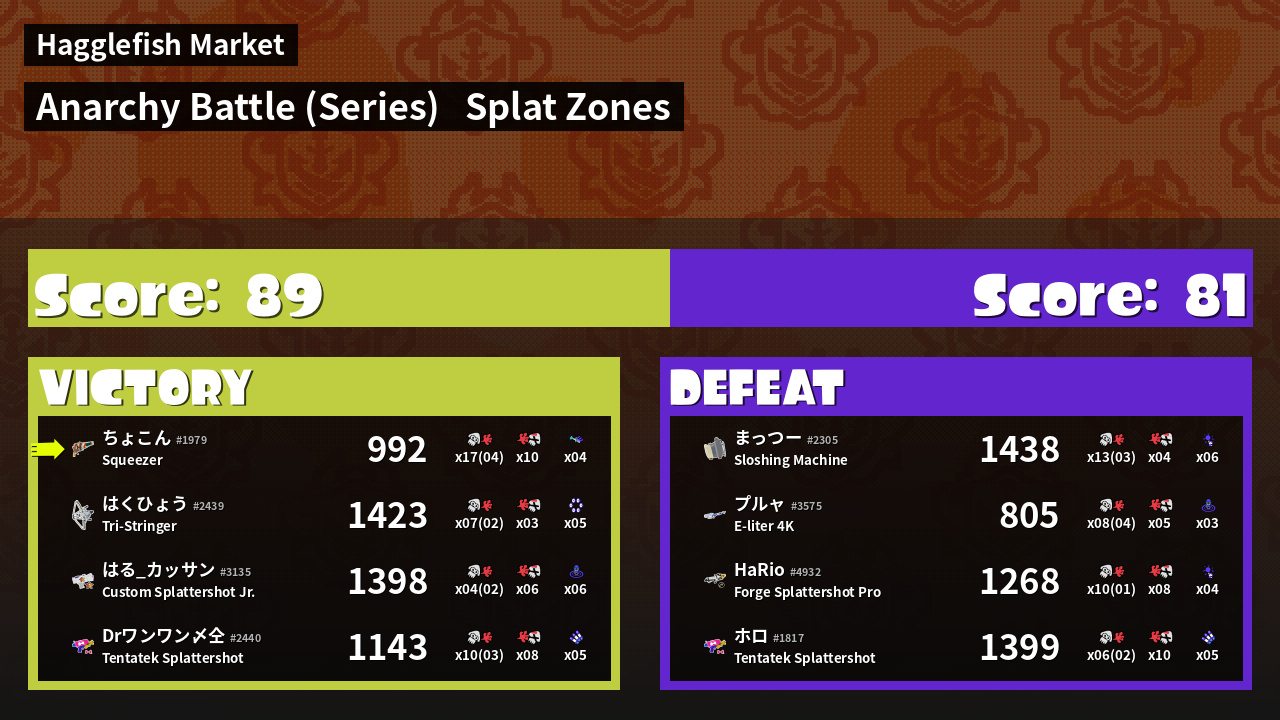 | Mode | Splat Zones - Anarchy Battle (Series) | ||