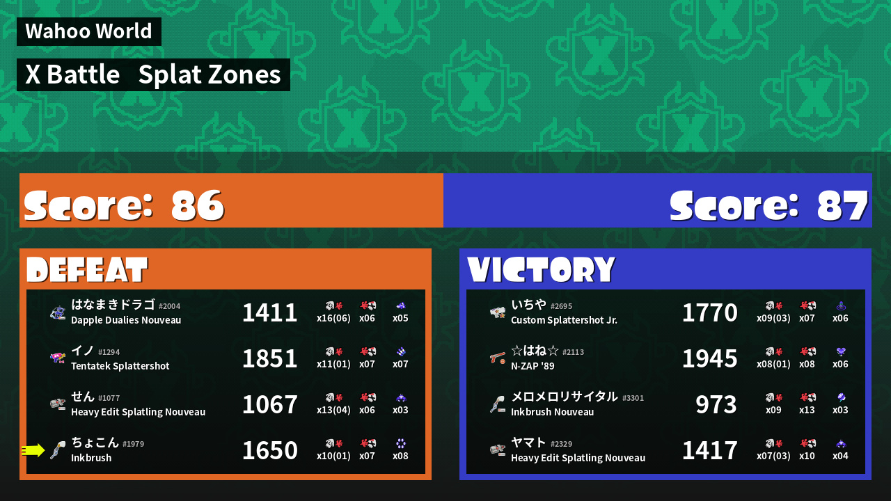| Mode | Splat Zones - X Battle | ||