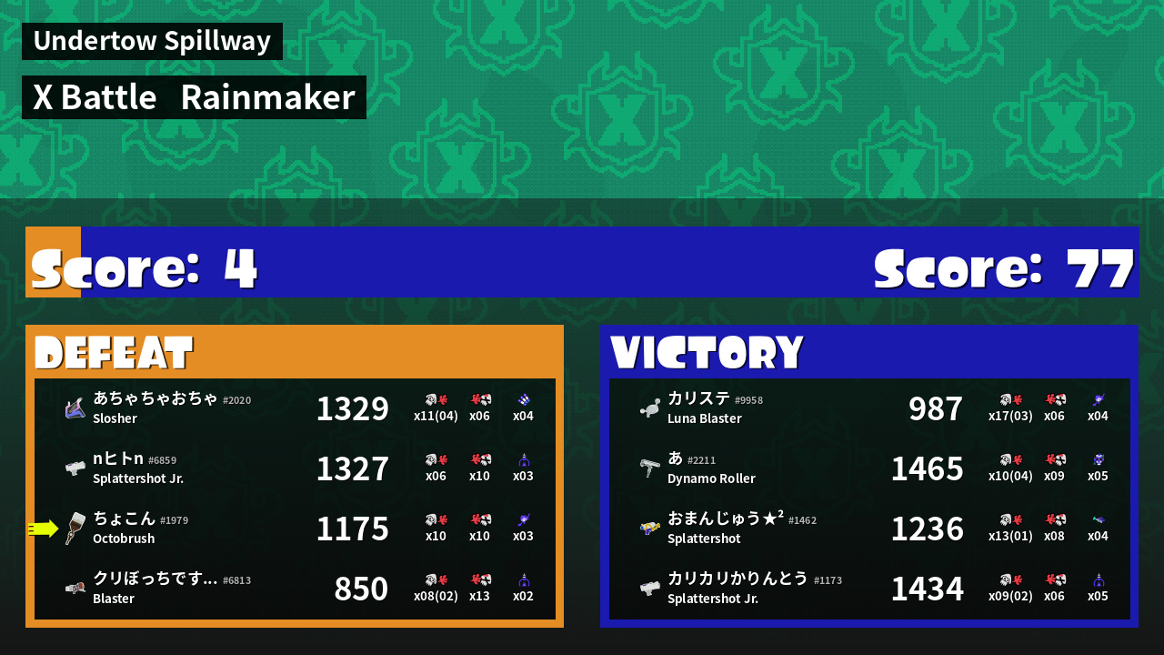 | Medals | #1 Enemy Splatter #1 Ground Traveler #1 Ink Consumer | ||