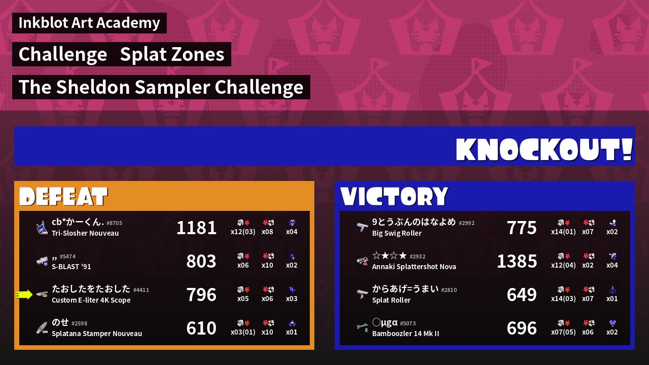 | Challenge | The Sheldon Sampler Challenge Make the most of random weapons! | ||