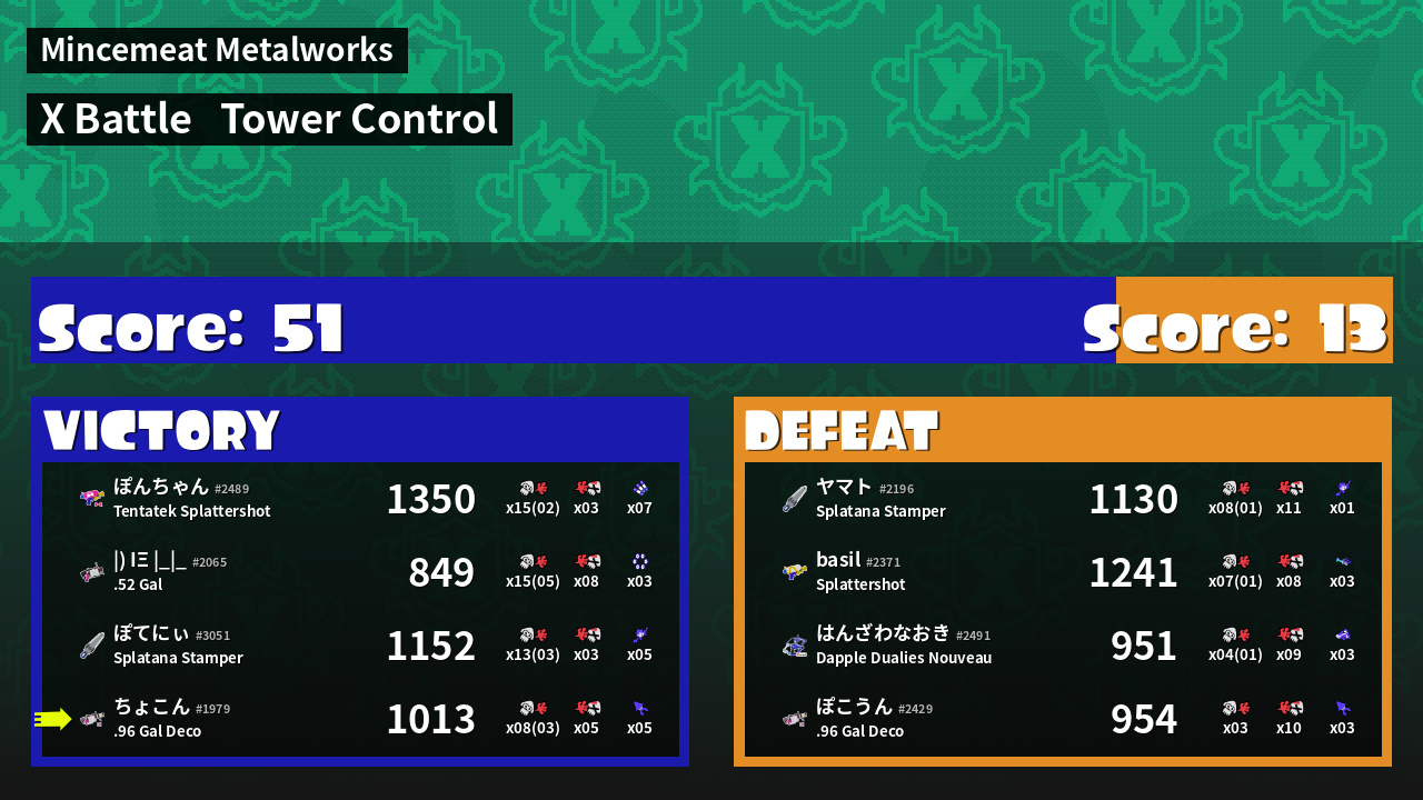 | Mode | Tower Control - X Battle | ||