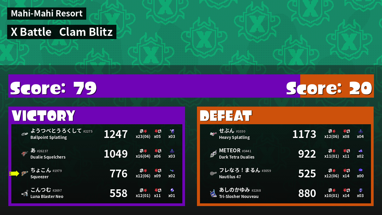| Mode | Clam Blitz - X Battle | ||