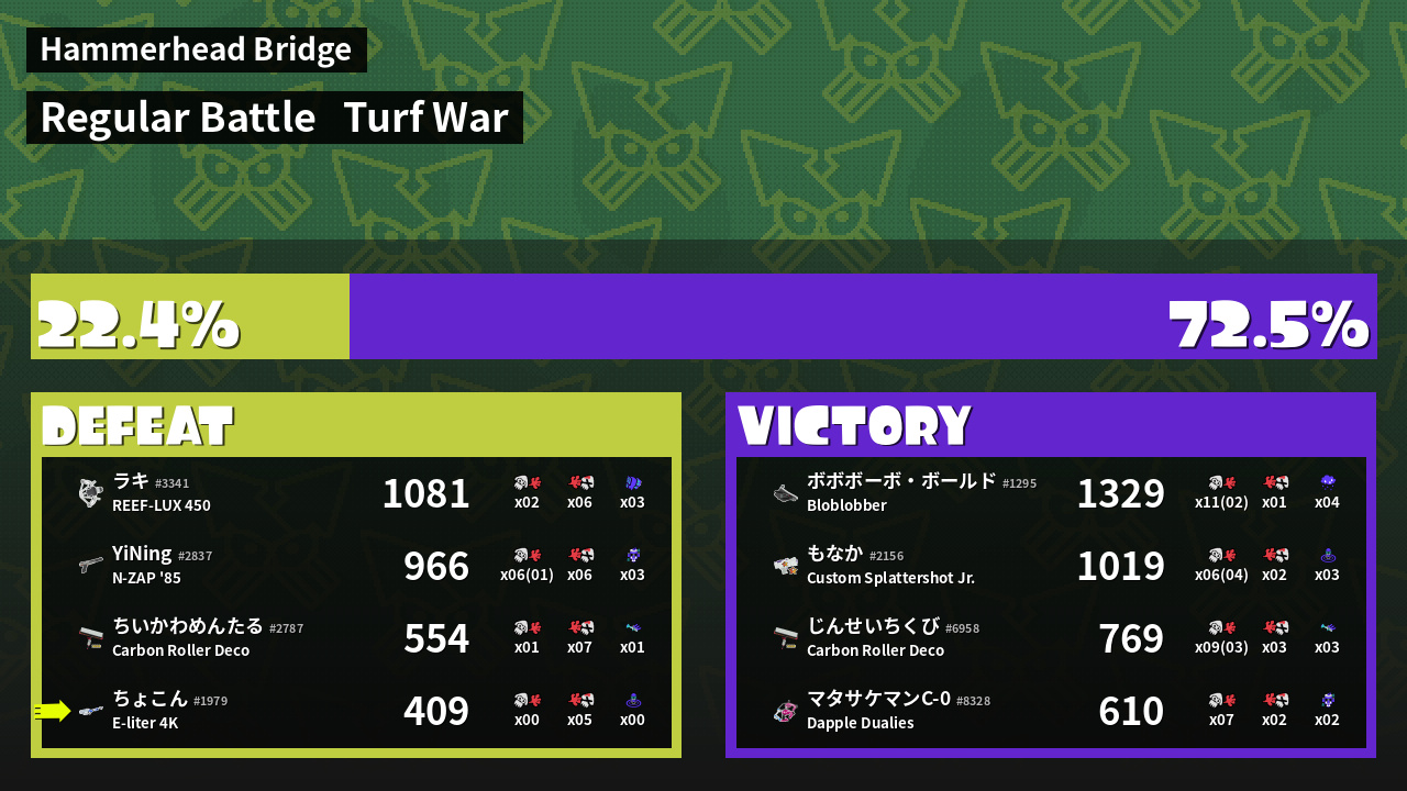 | Mode | Turf War - Regular Battle | ||