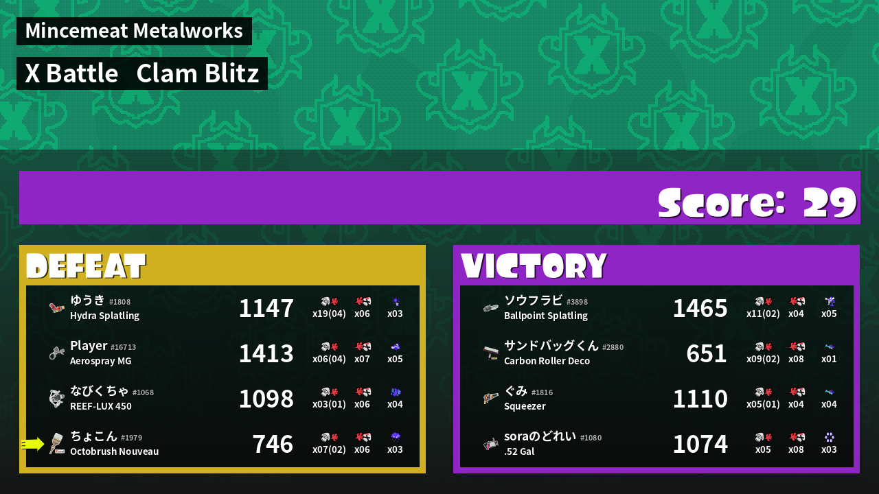 | Mode | Clam Blitz - X Battle | ||