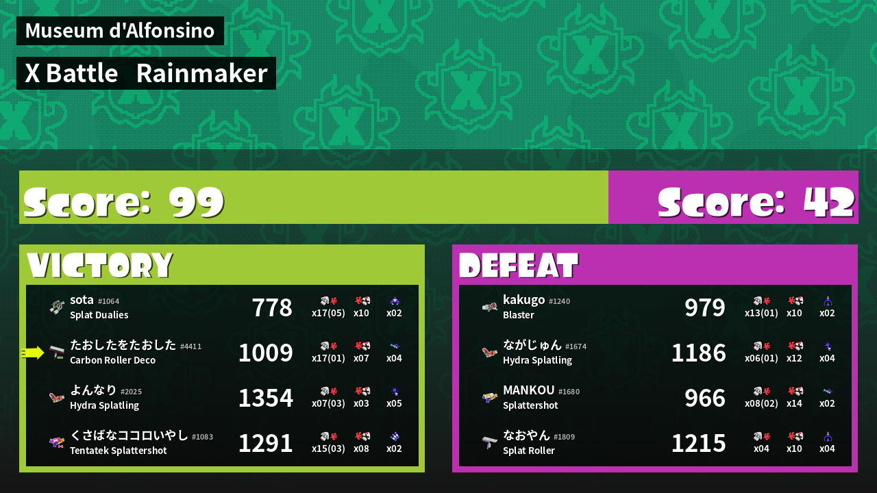 | Mode | Rainmaker - X Battle | ||