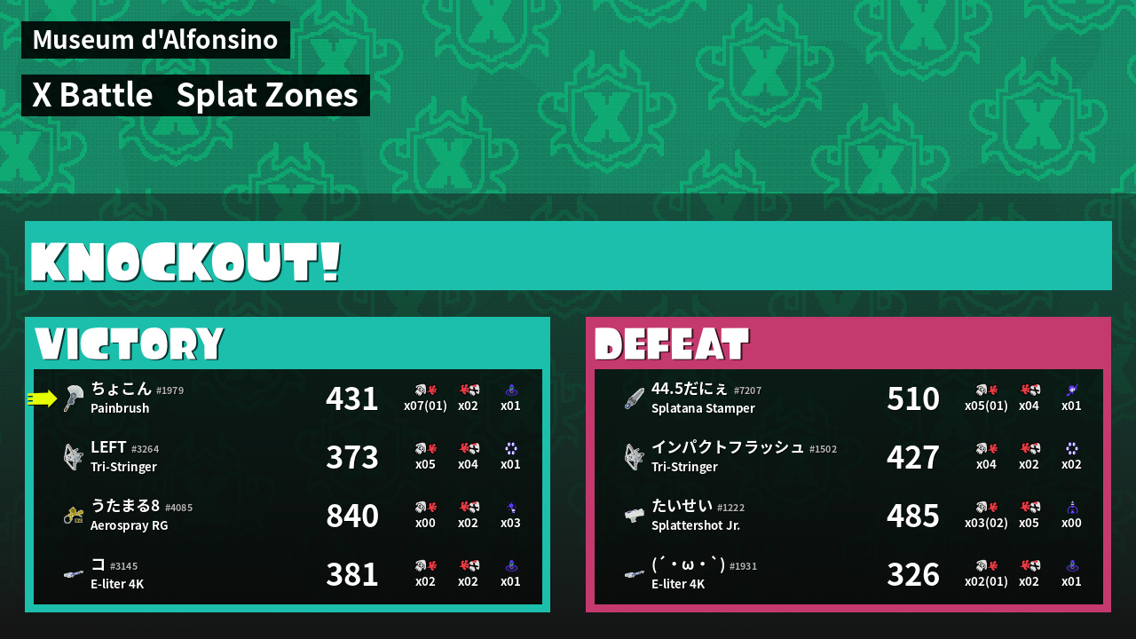 | Mode | Splat Zones - X Battle | ||