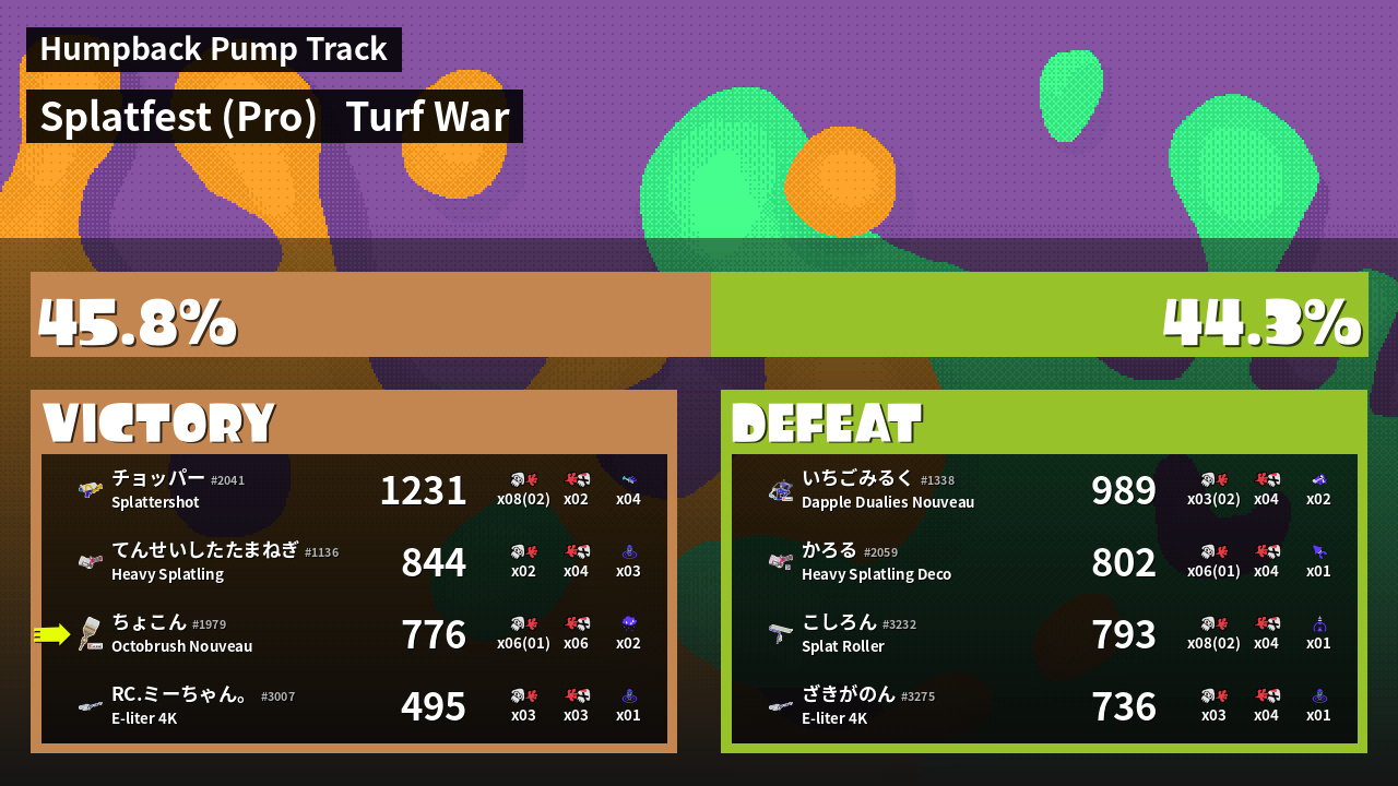 | Mode | Turf War - Splatfest (Pro) | ||