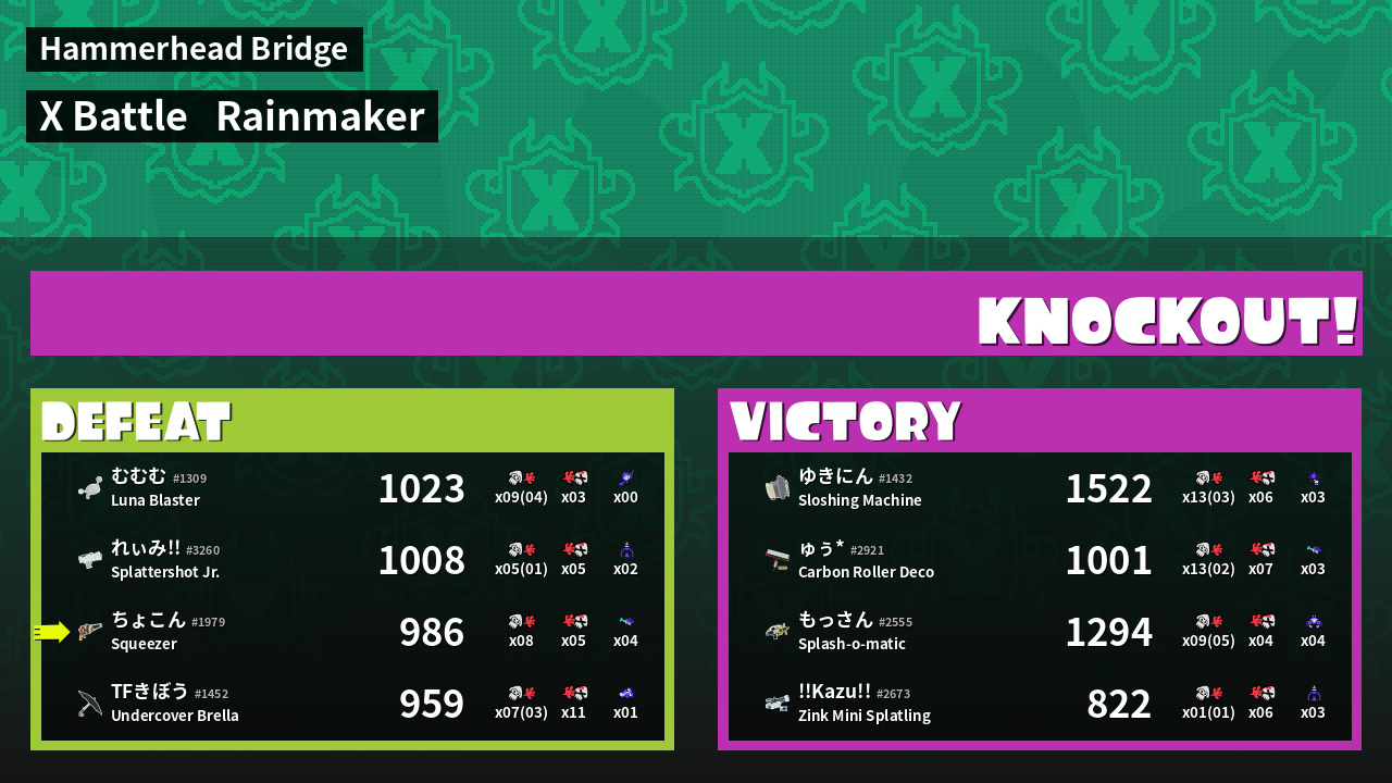 | Mode | Rainmaker - X Battle | ||
