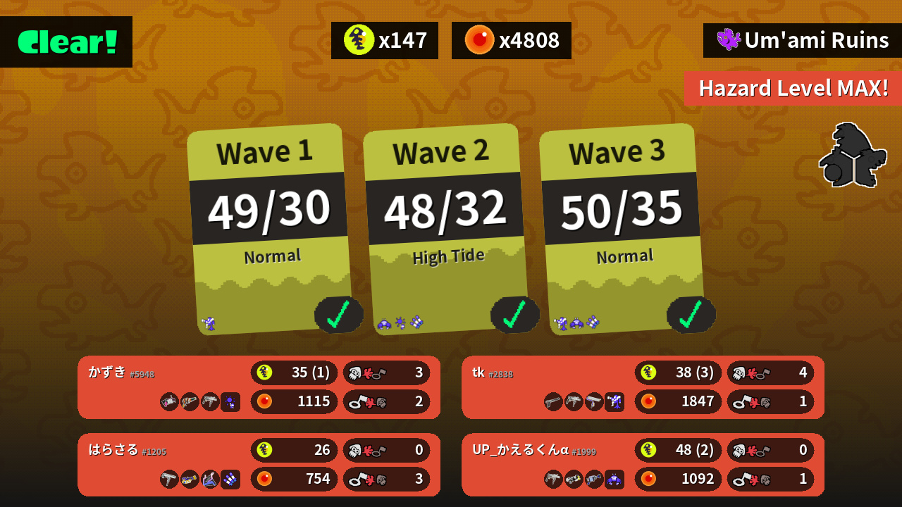 | Weapons | .52 Gal Squeezer Grizzco Roller | Grizzco Roller Splattershot Nova H-3 Nozzlenose | N-ZAP '85 Grizzco Roller Splat Roller | Dynamo Roller Mini Splatling Slosher |