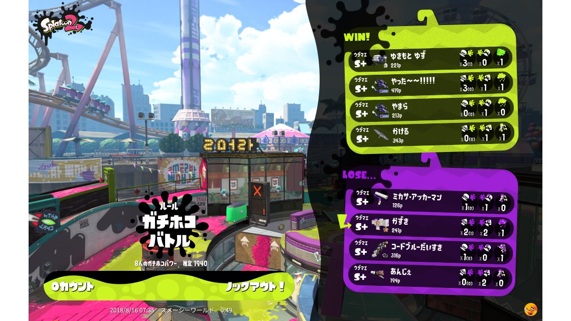 | Name | Weapon | Level | Rank | Inked | k+a/sp | k/d |