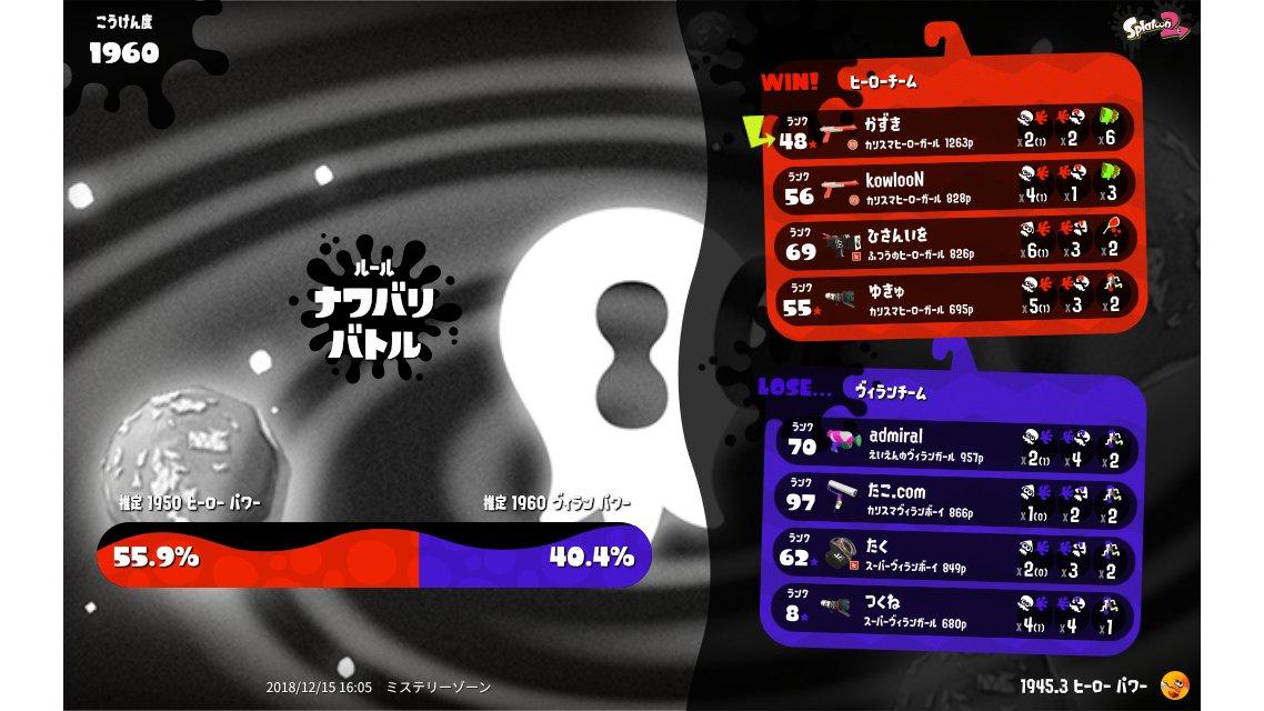 | Splatfest Power | 1,945.3 | ||||||||||||||||||||||||||||||||||
