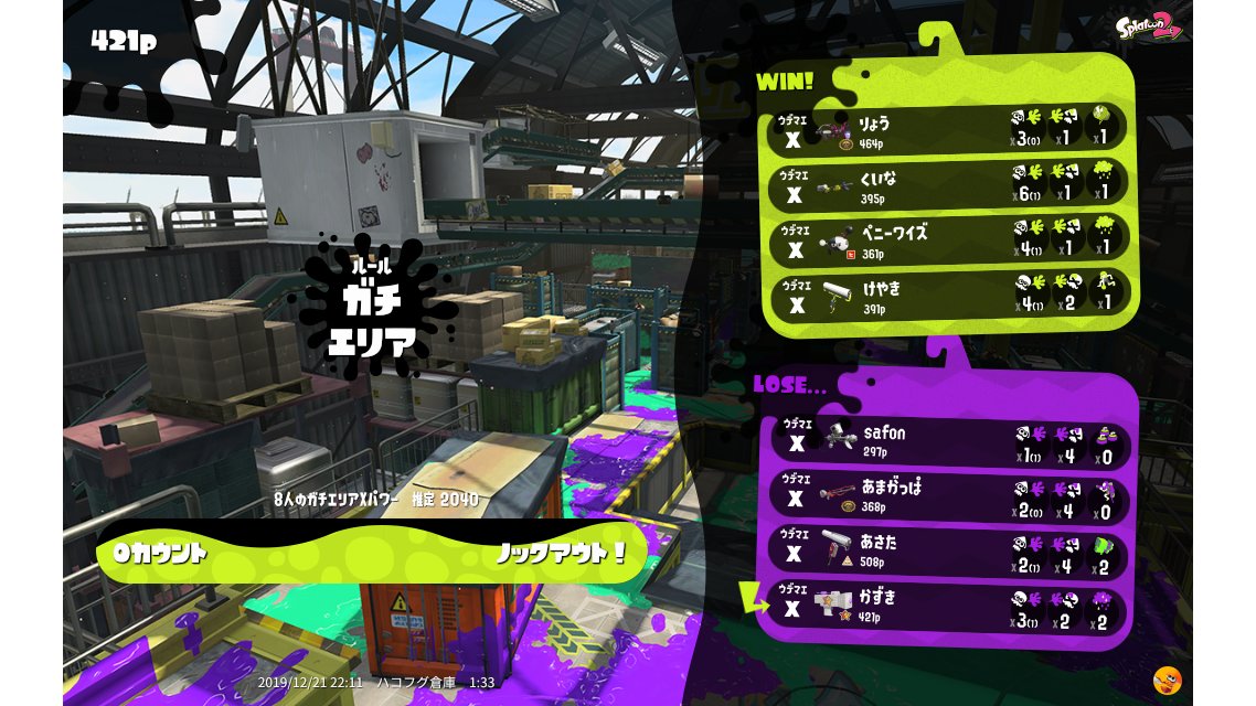 | Mode | Splat Zones - Ranked Battle | |||||||||||||||||||||||||||||||