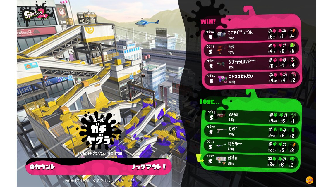 | Name | Weapon | Level | Rank | Inked | k+a/sp | k/d |