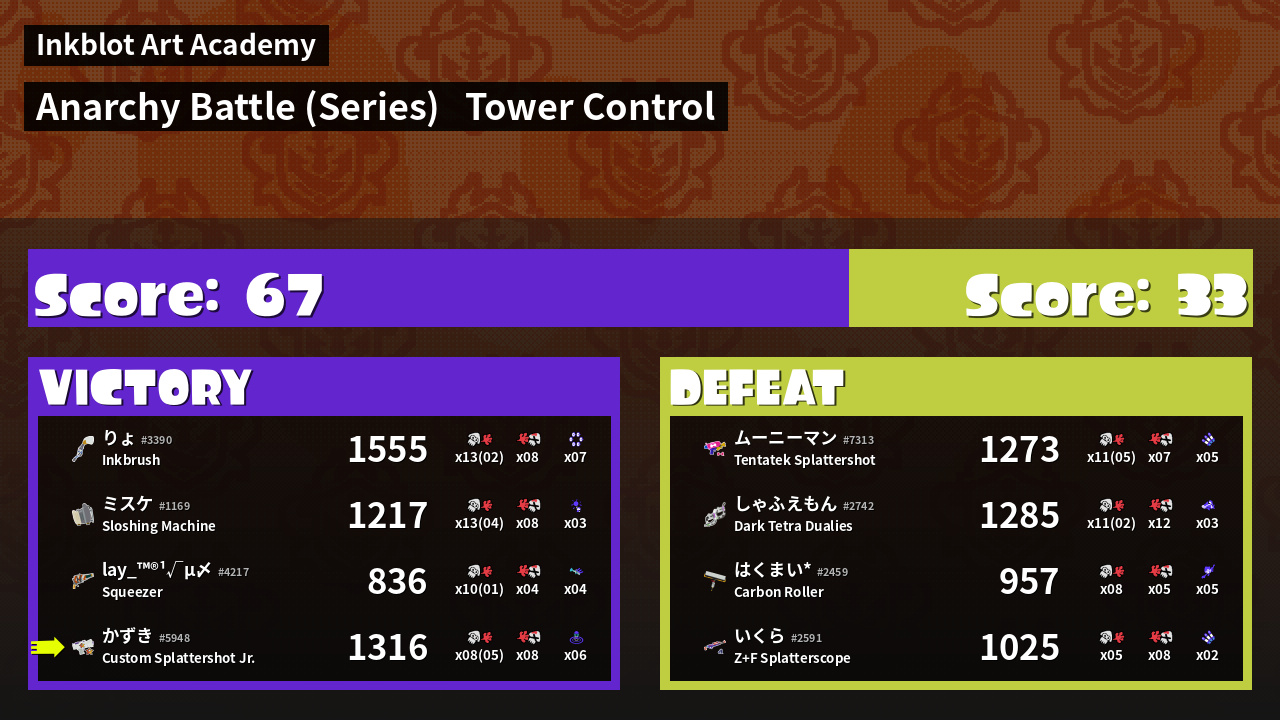 | Mode | Tower Control - Anarchy Battle (Series) | ||