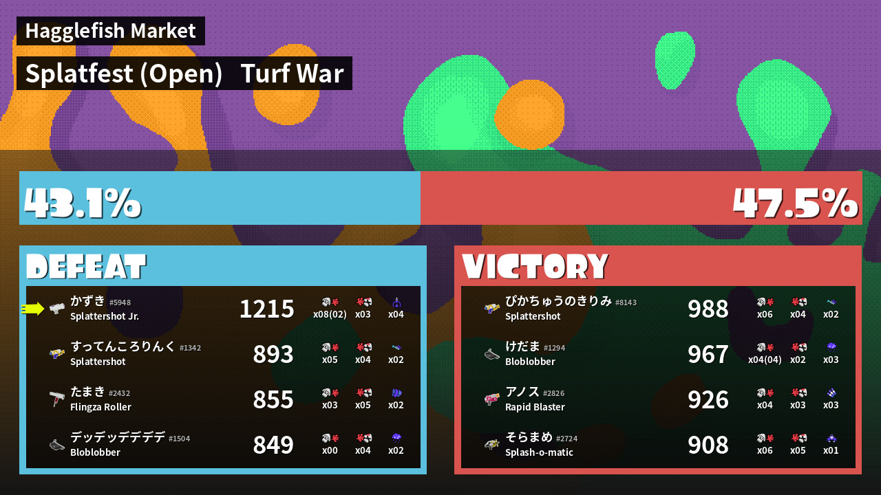 Kills / Deaths | 6 + 2 / 3 > Kill Ratio: 2.00 | ||