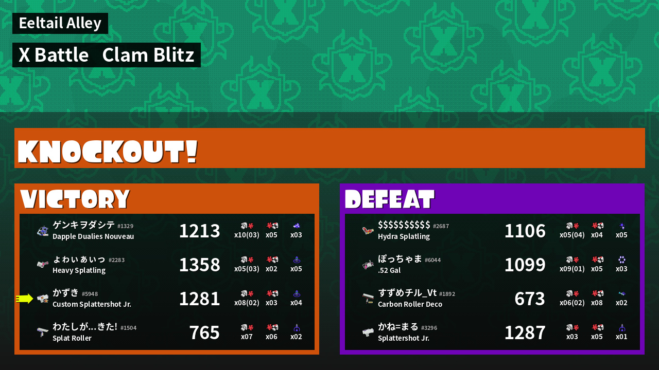 | Mode | Clam Blitz - X Battle | ||