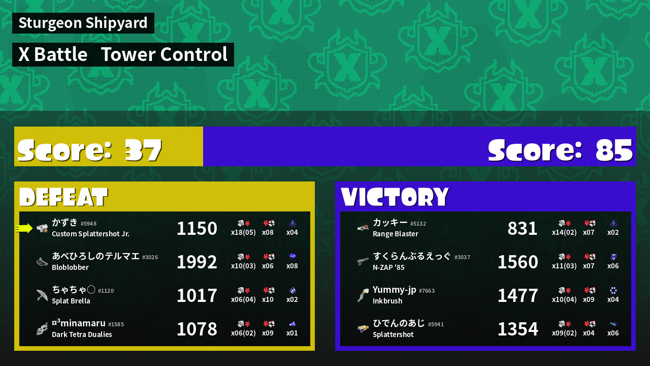 | Mode | Tower Control - X Battle | ||