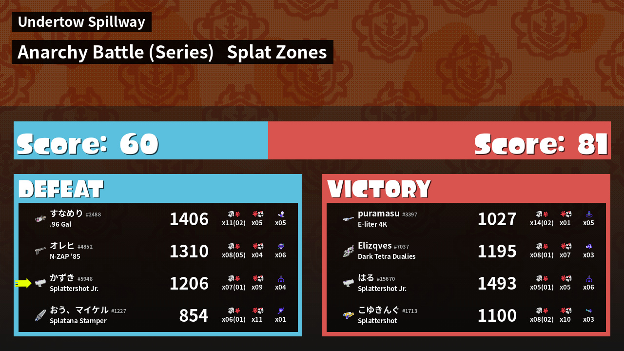 | Mode | Splat Zones - Anarchy Battle (Series) | ||