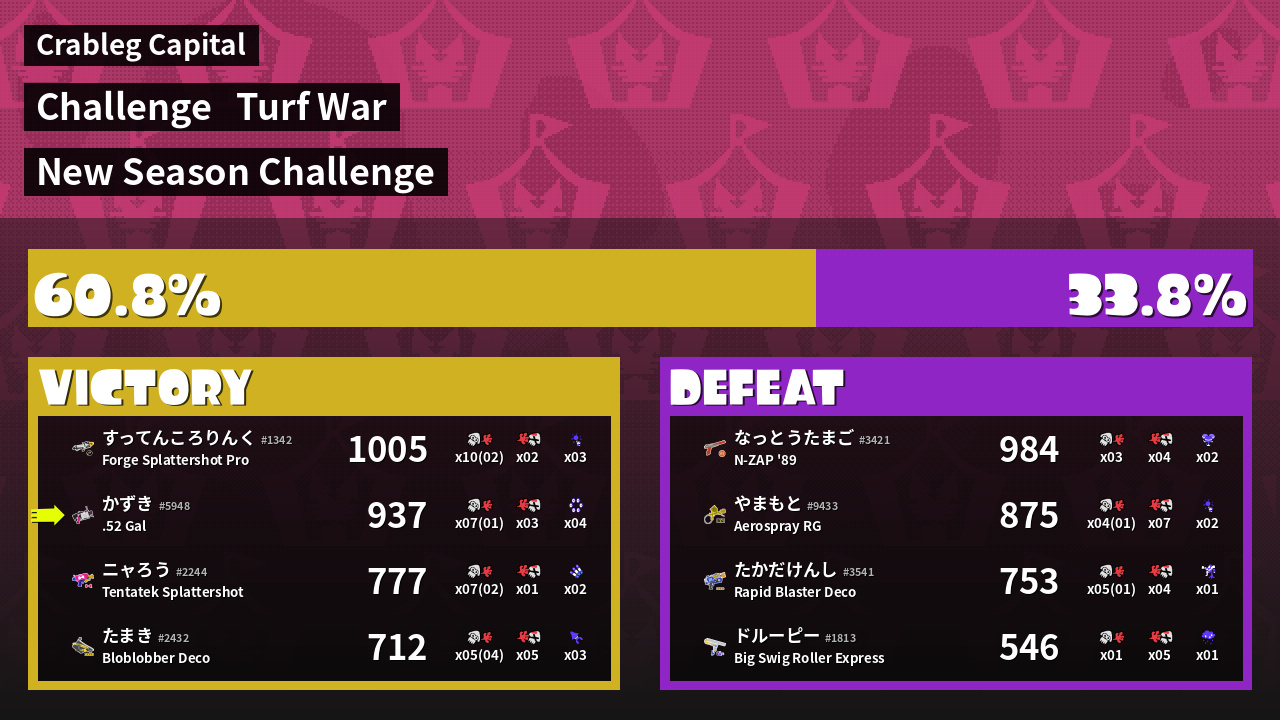 | Mode | Turf War - Challenge | ||