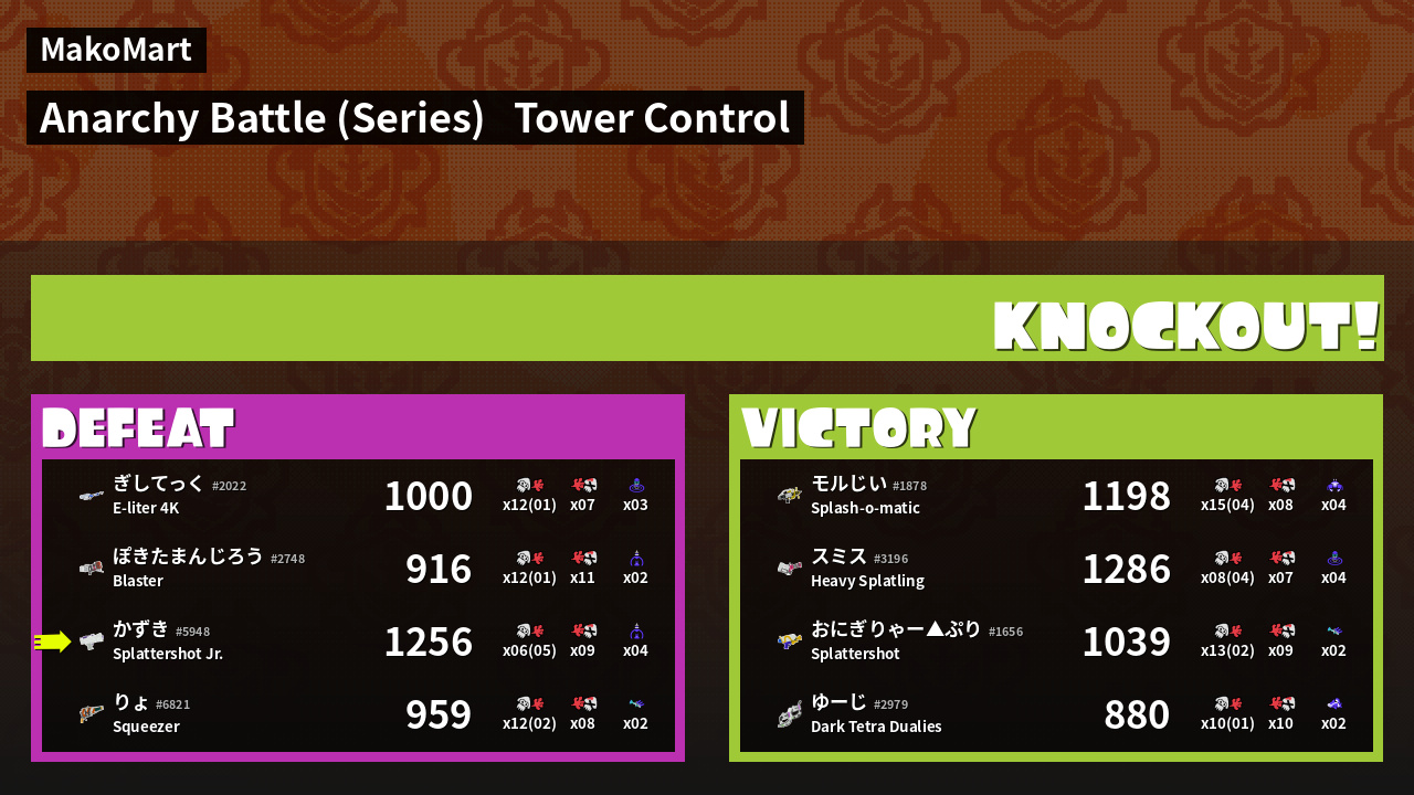 | Medals | #1 Turf Inker #1 Splat Assister #1 Checkpoint Breaker | ||
