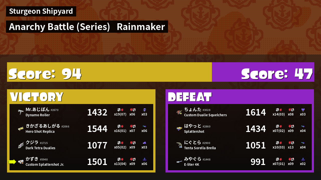 | Mode | Rainmaker - Anarchy Battle (Series) | ||
