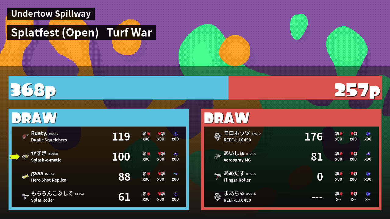 | Mode | Turf War - Splatfest (Open) | ||
