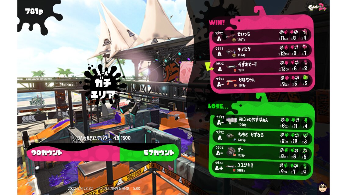 | Mode | Splat Zones - Ranked Battle | ||||||||||||||||||||||||||||||||||