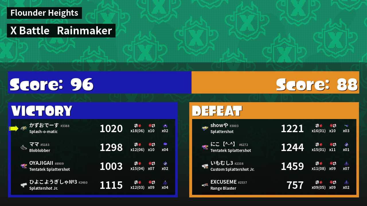 | Medals | #1 Overall Splatter #1 Enemy Splatter #1 Splat Assister | ||