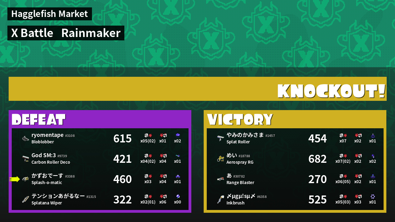 | Medals | #1 Enemy Splatter #1 Rainmaker Stopper #1 Ink Consumer | ||
