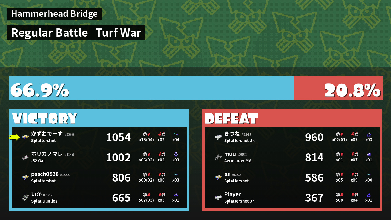 | Mode | Turf War - Regular Battle | ||