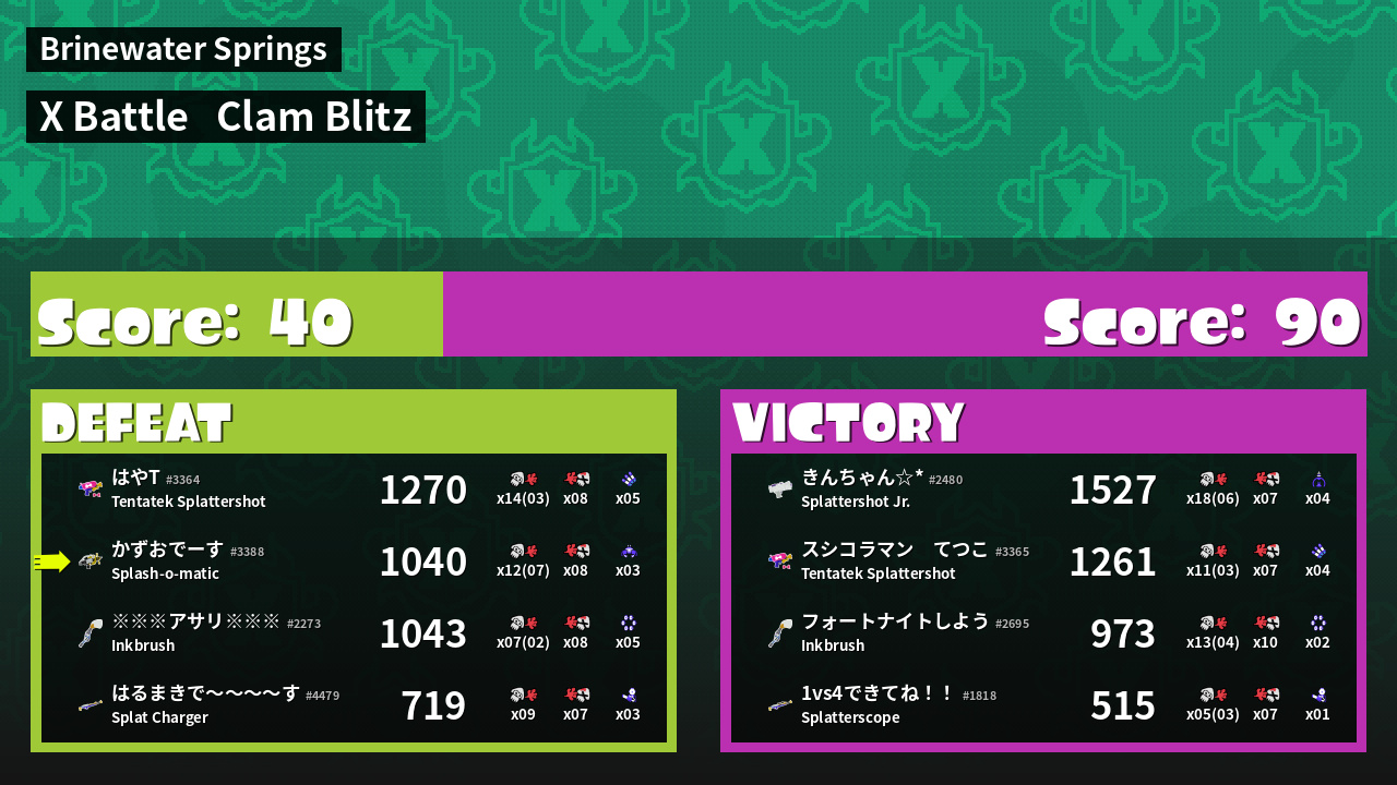 | Medals | #1 Super Jump Spot #1 Splat Assister #2 Overall Splatter | ||