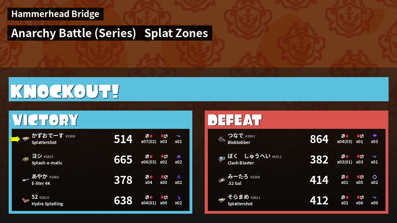 | Mode | Splat Zones - Anarchy Battle (Series) | ||