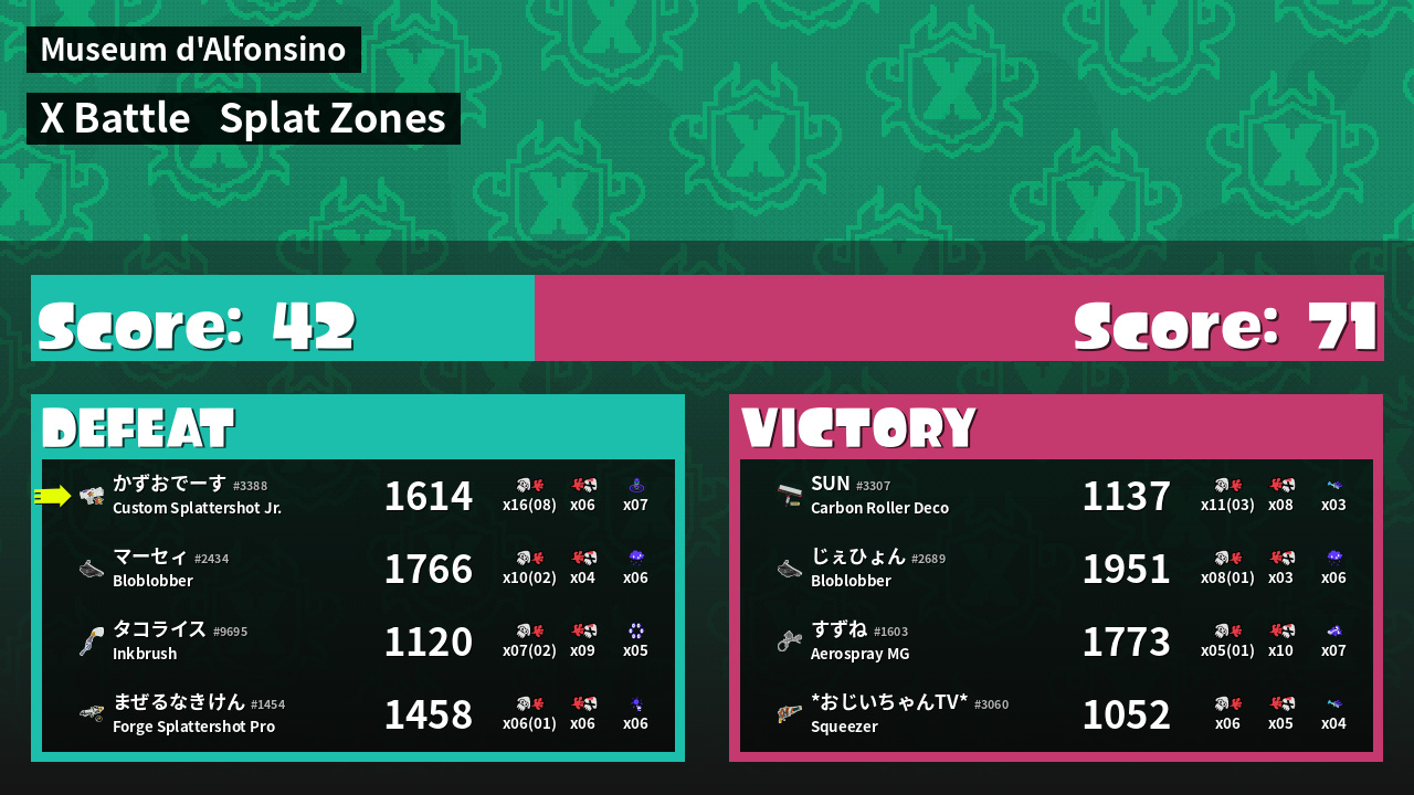 | Medals | #1 Overall Splatter #1 Splat Zone Inker #1 Splat Zone Guard | ||