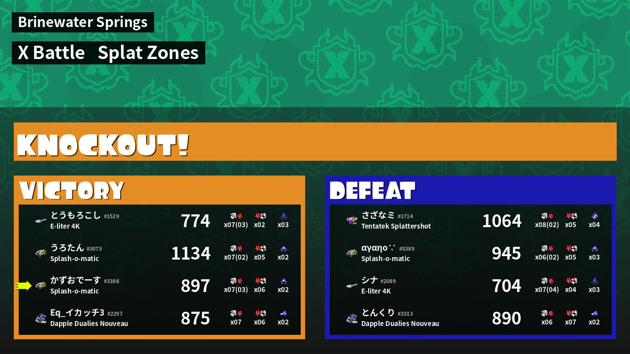 | Mode | Splat Zones - X Battle | ||