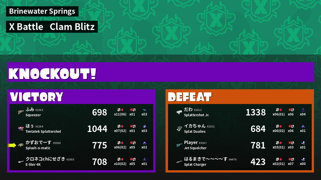 | Mode | Clam Blitz - X Battle | ||