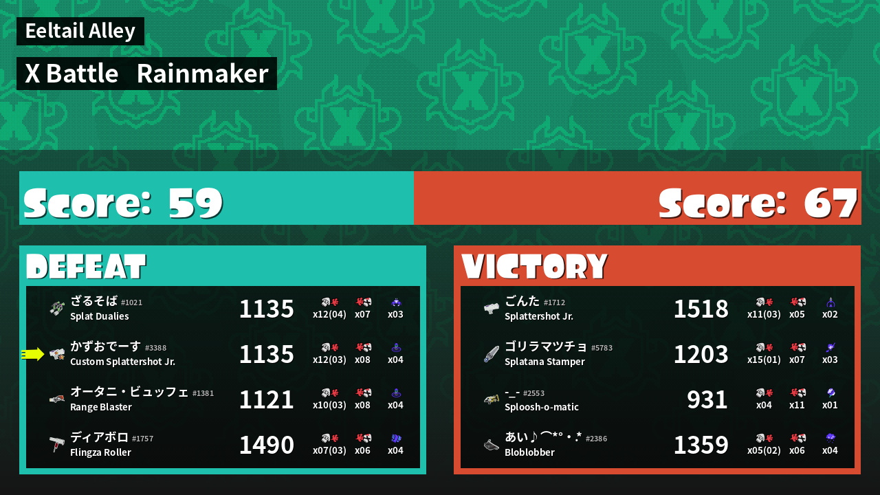 | Mode | Rainmaker - X Battle | ||