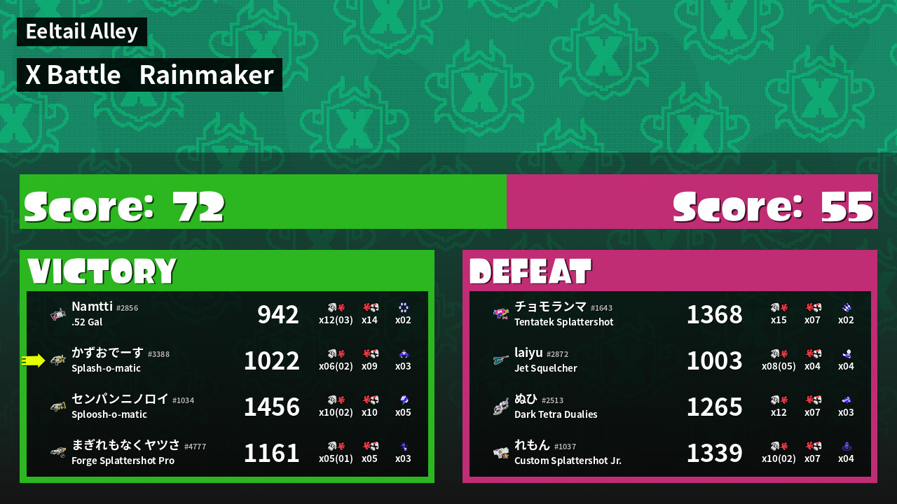 | Mode | Rainmaker - X Battle | ||