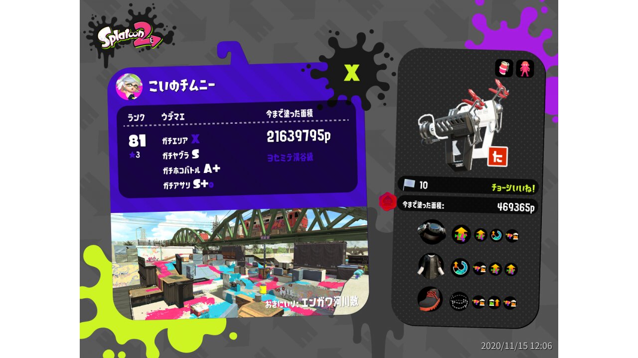 | Name | Weapon | Level | Rank | Inked | k+a/sp | k/d |