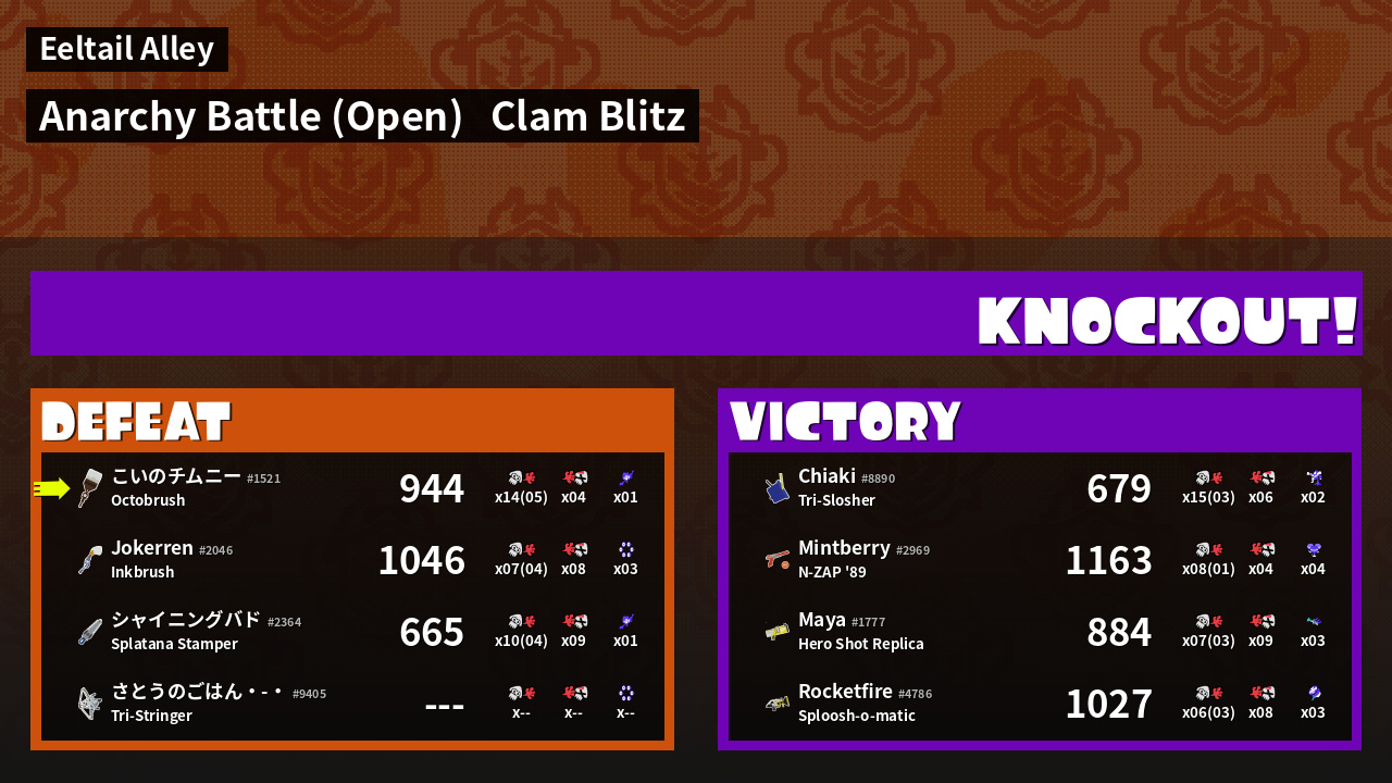 | Mode | Clam Blitz - Anarchy Battle (Open) | ||