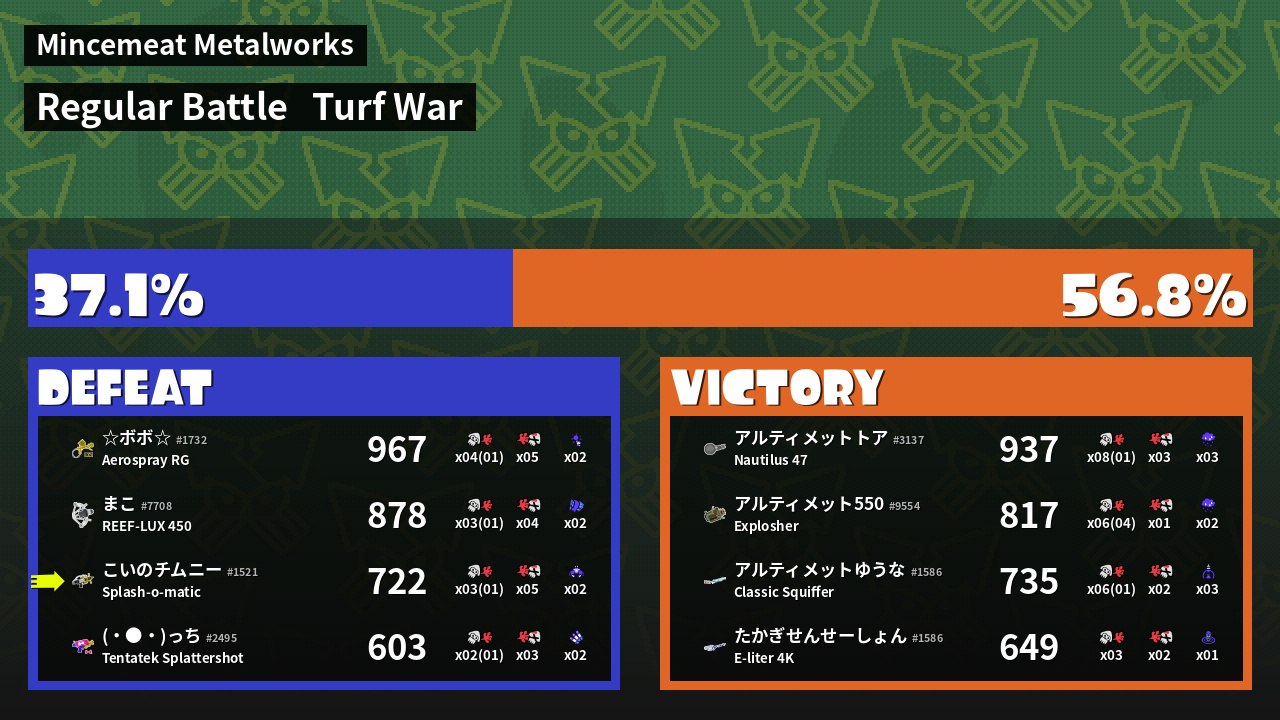 | Mode | Turf War - Regular Battle | ||
