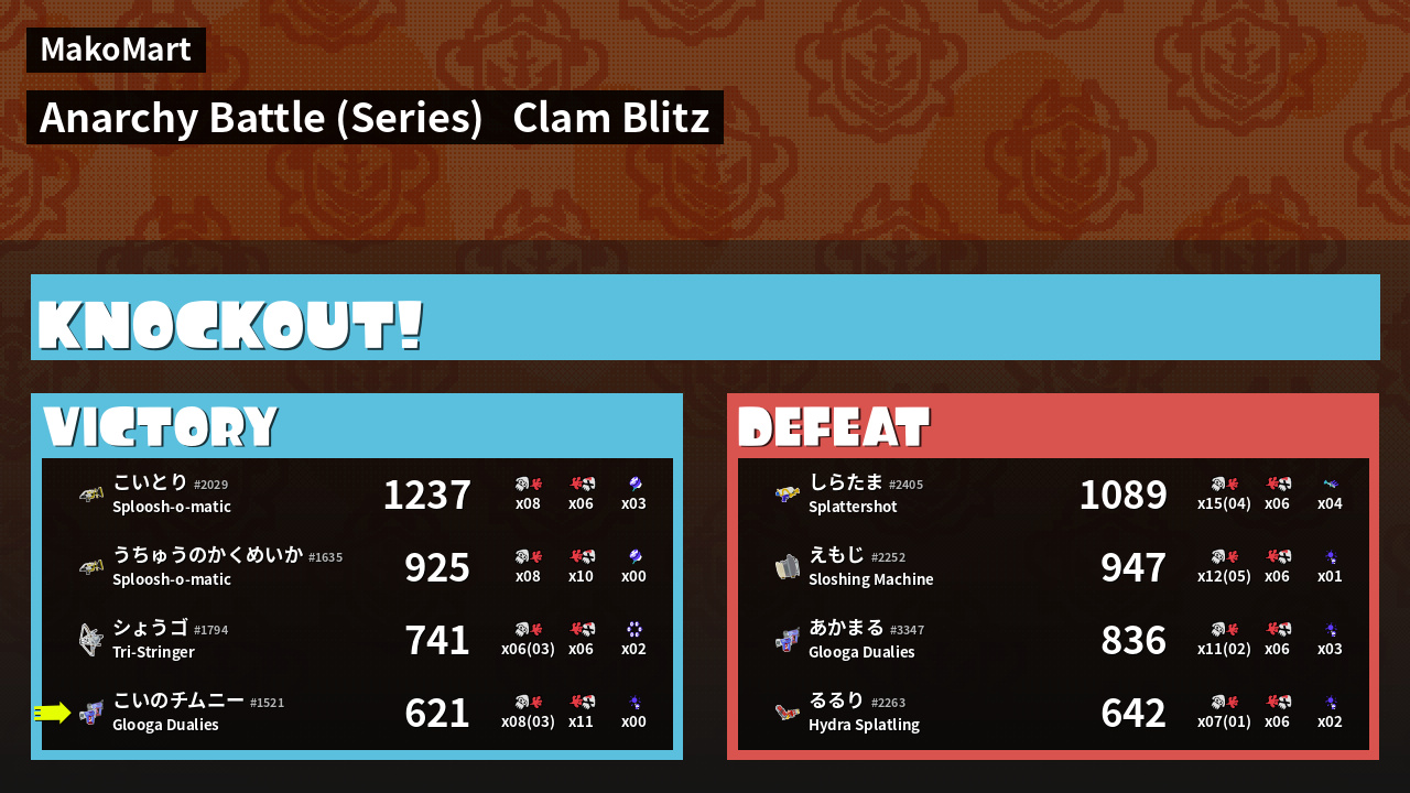 | Mode | Clam Blitz - Anarchy Battle (Series) | ||
