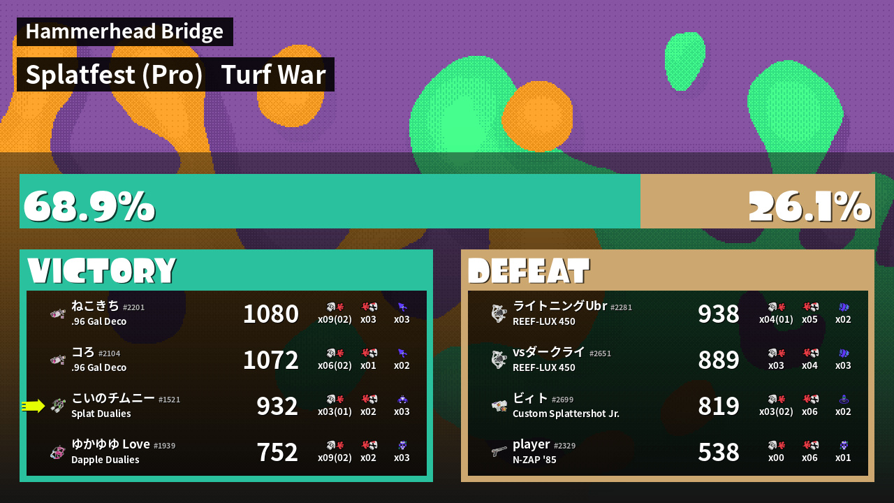 Kills / Deaths | 2 + 1 / 2 = Kill Ratio: 1.00 | ||