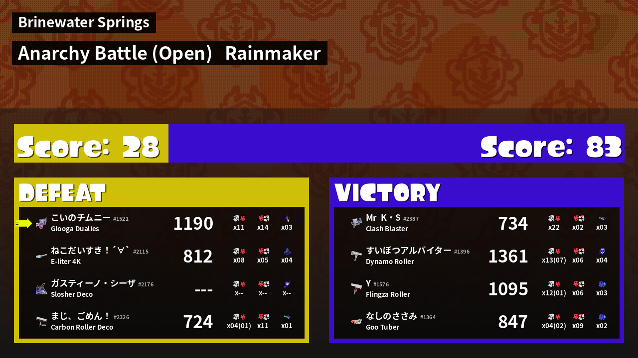 | Mode | Rainmaker - Anarchy Battle (Open) | ||