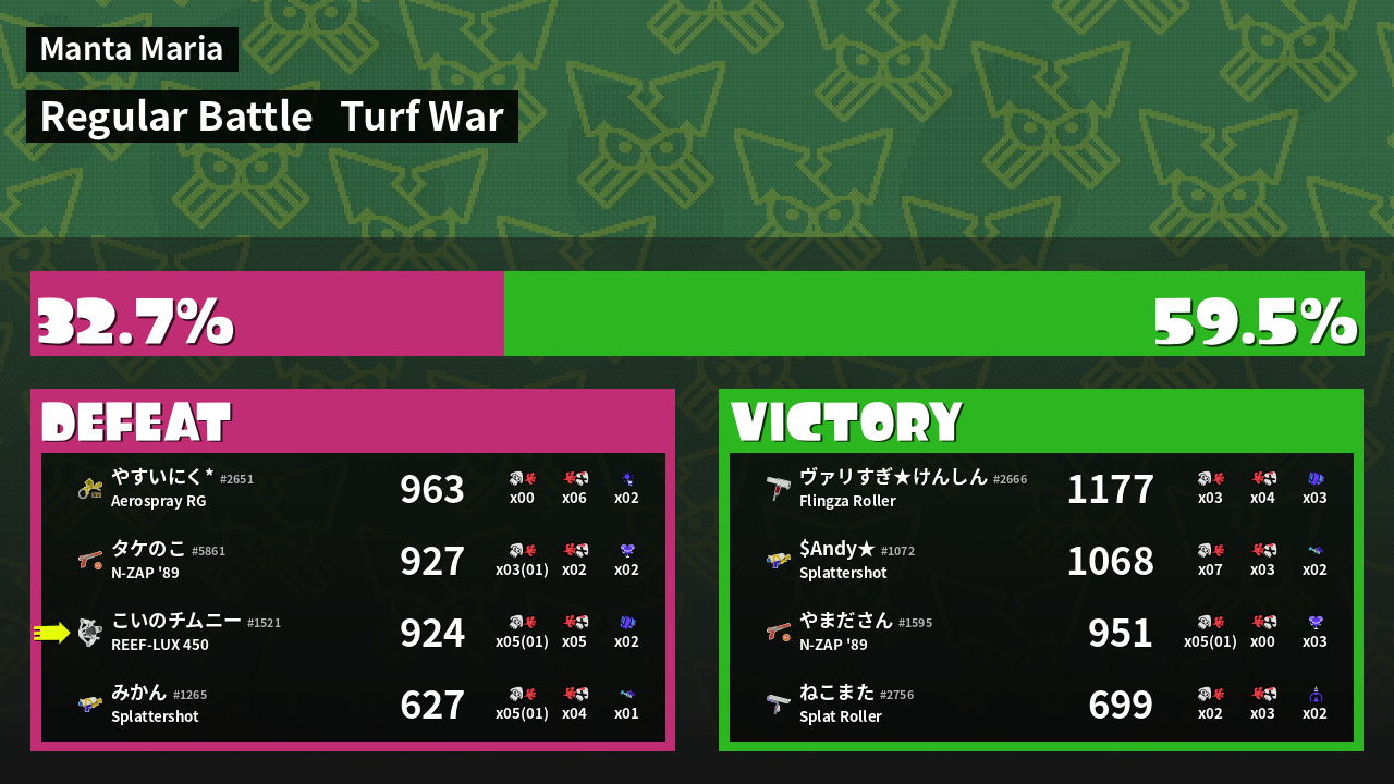 | Medals | #1 Overall Splatter #1 Popular Target #1 Home-Base Inker | ||