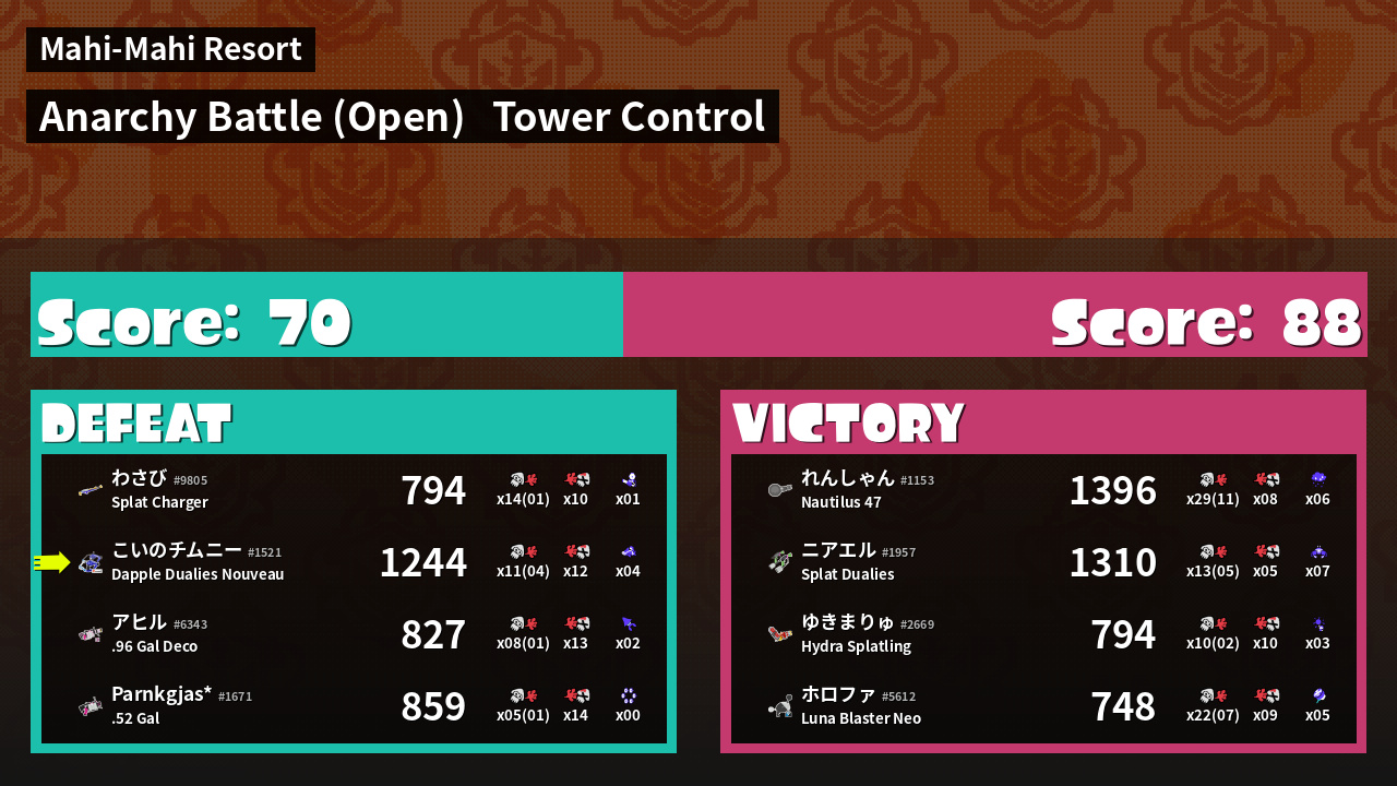 Results of こいのチムニー's Battle